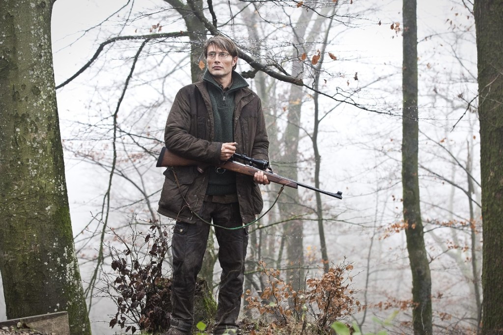 L’intrigue de La Chasse est resserrée sur seulement deux mois. Le film fait pourtant une ellipse d’un an, lors de l’épilogue. Lucas se rend au club de chasse, avec son frère et son fils Marcus (Lasse Fogelstrom). Ils offrent un fusil à l’adolescent, afin qu’il puisse tuer sa première proie, et ainsi devenir un homme. J’ai beau ne pas soutenir la pratique de la chasse, on sent que c’est un rite important pour eux, et surtout une journée plutôt joyeuse et festive. Lucas salue et discute avec plusieurs personnes, comme s’il avait été réhabilité, mais on le sent nerveux. Durant le discours de son frère, il cherche les regards qui pourraient trop s’appesantir sur lui. Certaines personnes continuent-elles à le juger, ou n’est-ce qu’un effet de son imagination, dû au traumatisme ? Ce n’est pas une scène de tension pour autant. Après tout, Lucas a pu s’occuper de Klara, signe qu’ils se sont réconciliés, et que plus personne ne se méfie vraiment. Et pourtant… Lorsque Lucas part chasser et s’éloigne du groupe, un homme le met en joue et tire juste à côté de lui, en guise d’avertissement. La silhouette mystérieuse semble hésiter à l’abattre, avant de disparaître, cachée par le contre-jour. Le dernier plan du film s’arrête sur le visage de Lucas, silencieux et en état de choc. Il réalise enfin qu’il ne sera jamais lavé de tout soupçon, que les villageois sont simplement hypocrites et même que sa vie est menacée. Il ignore qui a tiré et il ne le saura peut-être jamais. Cette fin est terrible car Lucas n’a aucune issue de secours, à part peut-être celle de s’exiler du village où il a toujours vécu. Elle est d’autant plus glaçante quand on sait que la fin alternative montre Lucas se faire exécuter, sans sommation. Mais je ne suis pas mécontente que Vinterberg ait opté pour une fin ouverte. L’incertitude et l’insécurité qui en découlent sont tout aussi glaçantes.
