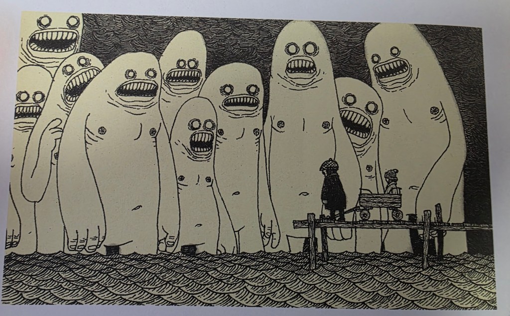Tarsier Studios se localise en Suède. Après avoir travaillé sur Little Big Planet, le studio développe un diptyque sans lequel ce blog n’aurait peut-être jamais vu le jour : Little Nightmares. Les deux jeux sont sortis respectivement en 2017 et en 2021. Vous pouvez d’ailleurs retrouver le dossier, dans lequel je propose une analyse complète de la saga. En 2019, Tarsier Studios quitte Bandai Namco pour THQ Nordic. Par la même occasion, il perd les droits de Little Nightmares. Il en résulte un troisième opus, sorti en octobre 2025, particulièrement décevant. Tous les regards se sont naturellement tournés vers Reanimal. Le dernier né de Tarsier Studios est sorti au mois de février 2026. Le titre du jeu évoque le règne animal, un retour à la vie sauvage, voire même le processus de réanimation. Le studio se serait inspiré d’It Takes Two, afin de proposer une expérience parfaitement calibrée pour deux joueurs. (J’ai eu la chance de faire le jeu, en local, avec le graphiste du blog, Mystic Falco). Au niveau de l’ambiance, Reanimal s’inspire plus vraisemblablement de Silent Hill 2. (La découverte d’un corps, assis sur un fauteuil devant la télévision, n’est pas sans rappeler James Sunderland). Le bestiaire, quant à lui, semble tout droit tiré de l’imaginaire de John Keen Mortensen. Cet illustrateur danois contemporain a notamment publié Post-it Monsters, en 2012. Vous trouverez une galerie de dessins de Mortensen, à la fin de cet article, pour souligner le parallèle. Mais par-dessus tout, Reanimal est la suite spirituelle de Little Nightmares 2. Maintenant que nous en savons plus sur les sources d’inspiration de Reanimal, il est temps de plonger dans les ondes macabres et cryptiques du titre. Cette analyse contient naturellement des spoilers.