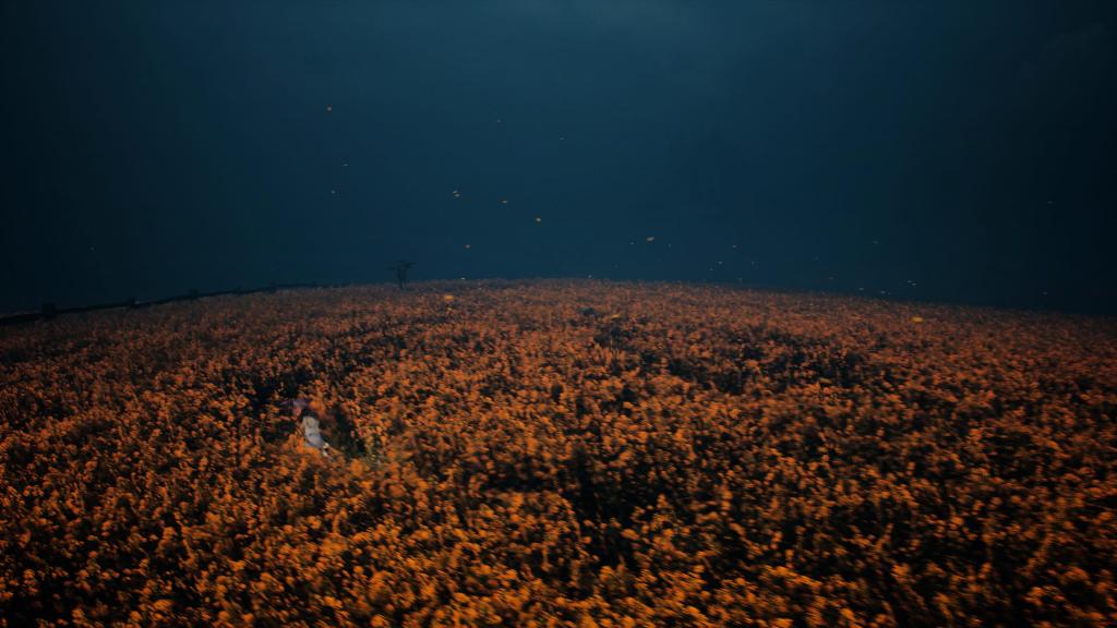 Après avoir longuement navigué, les trois amis accostent sur une nouvelle plage. Ils grimpent en haut d’une falaise avant d’arriver dans un champs luxuriant. La multitude de fleurs dorées offre l’un des panoramas les plus lumineux et colorés du jeu. A la fin du printemps, les pleines suédoises sont envahies de fleurs sauvages scandinaves. Peut-être est-ce aussi une référence à Midsommar (2019), un film d’horreur se déroulant à l’extérieur, en plein jour, et en… Suède. (L’héroïne du film porte une couronne ornée de fleurs jaunes, sur l’une des affiches). Les enfants entrent ensuite dans une porcherie. Les cochons y sont bien plus grands qu’eux, mais ce n’est rien comparé à leur leader. Il s’agit d’un cochon gigantesque, dont le flanc est ouvert. Il se nourrit de ses propres congénères, mais ne semble pas représenter de danger pour les enfants. Il leur conseille même de « partir ». Le personnage n’apparaît qu’au cours de cette scène, et pourtant, il était assez présent dans les images promotionnelles du jeu, au point d’avoir une figurine à son effigie dans la version collector de Reanimal. Le fait que le cochon soit doué d’intelligence et de parole me fait penser à La Ferme des Animaux, un roman d’Orwell, publié en 1945 afin de dénoncer le totalitarisme. Les posters à collecter dans le jeu sont des affiches de propagande. L’île est donc bien sous le joug de la guerre, voire d’un régime totalitaire.