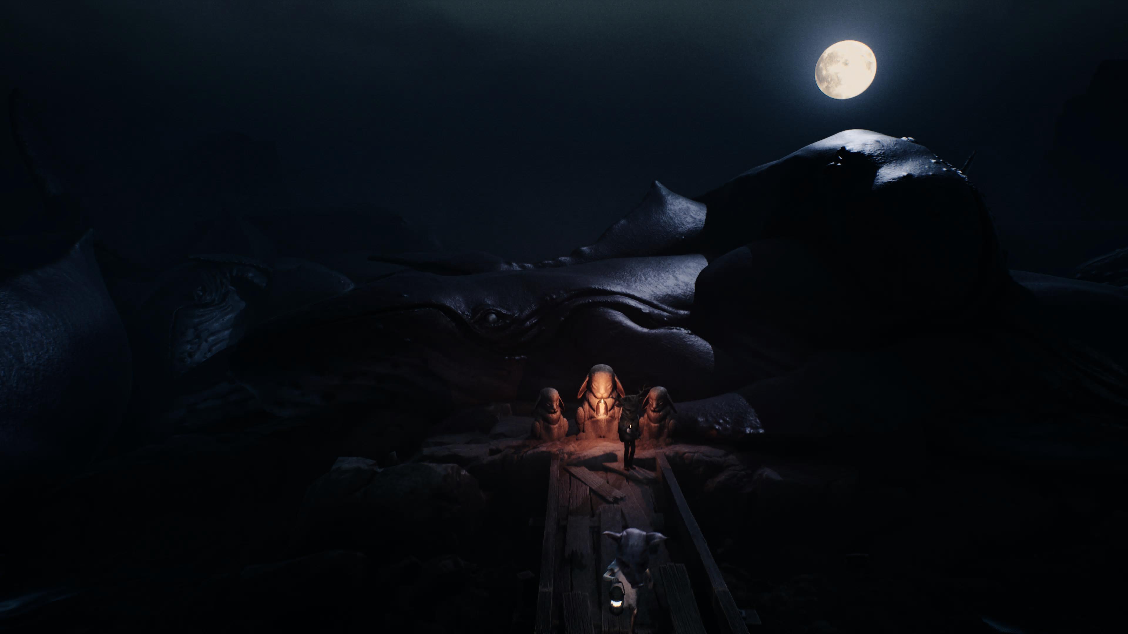 Il existe aussi une fin secrète, déblocable si vous avez trouvé tous les cercueils cachés. (Notons que le dernier, correspondant à The Girl, ne dévoile pas sa mort, mais la fuite d’un lapin). Dans cette fameuse fin secrète, The Girl est inconsciente voire morte, au fond du puits. Elle n’a pas son masque. Des créatures, ressemblant à des enfants portant des masques d’animaux blancs, l’encerclent. Les masques en question font penser à celui de The Girl, (en forme de lapin). Ils ne semblent pas lui vouloir du mal, au contraire. L’eau du puits commence à monter. On peut se demander si c’est pour aider The Girl à s’échapper ou si cela va provoquer le Déluge. Le moins que l’on puisse dire, c’est que la fin de Reanimal est tout aussi cryptique que l’aventure ; et qu’on en ressort avec plus de questions que de réponses. D’ailleurs, compte tenu de la similitude entre le prologue et l’épilogue, mais aussi du titre du dernier chapitre (« Un passé dévorant ») ; il semblerait que Reanimal joue avec le temps, de la même manière que Little Nightmares 2. On ne peut qu’espérer que les DLC qui sortiront à l’avenir, permettront d’en apprendre un peu plus sur le lore et l’univers. Mais en attendant, l’on peut émettre des théories.