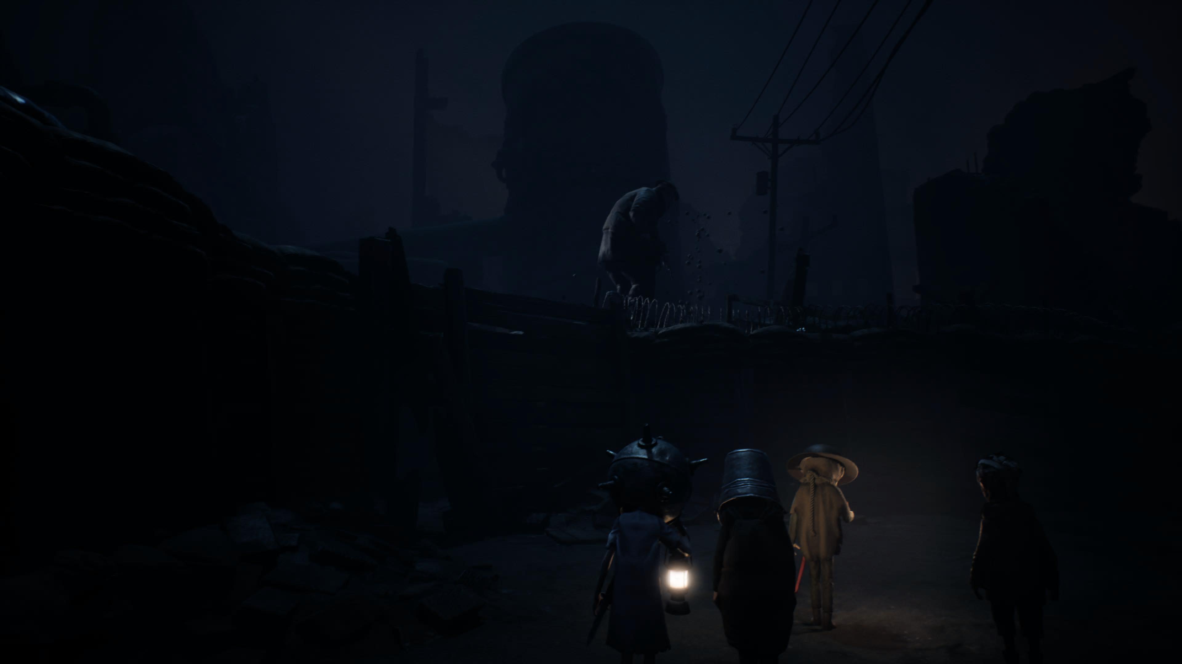 Les enfants regagnent la terre ferme et arrivent dans la ville de la première ligne. Les lieux explorés auparavant avaient été ravagés par la guerre, mais ici, la bataille fait encore rage. Les enfants doivent traverser des tranchées et croisent la route de nombreux soldats. Le jeu semble vouloir brouiller les pistes temporelles. Les tranchées évoquent davantage la première guerre mondiale que la deuxième. D’ailleurs, les soldats portent des uniformes typiques de 14-18. Contrairement à Little Nightmares qui, comme son titre l’indique, a une dimension onirique ; Reanimal est bien ancré dans la réalité. Il s’inspire clairement d’une Europe dévastée par la guerre mondiale. Il est toutefois impossible d’identifier un pays ou une date précis. Et c’est bien sûr volontaire : cela apporte une dimension plus universelle au jeu. Les soldats, comme tous les autres adultes du jeu, sont hostiles. On comprend d’ailleurs mieux pourquoi Reanimal n’a de cesse de nous parler d’une jeunesse sacrifiée par les générations précédentes. Quoi de plus meurtrier pour les innocents et les jeunes qu’une guerre ? Mais les soldats ne semblent pas aussi maléfiques que The Sniffer ou The Mother. Non seulement ils ont une apparence plus humaine, mais certains préfèrent se suicider plutôt que d’attaquer. (On assiste à de nombreux suicides dans les tranchées, mais il y a aussi un soldat pendu au-dessus de l’eau, dans un décor qui rappelle le Pont des Soupirs, à Venise). On aperçoit mal leur visage mais tous semblent défigurés, comme des Gueules cassées. Reanimal est assurément une dénonciation de la violence et de la guerre. Mais ce troisième acte marque surtout la naissance de l’antagoniste du jeu : The Sheep Beast.