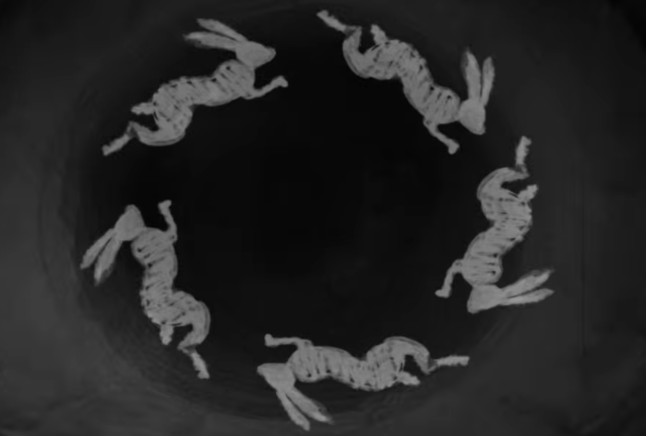Faisons une parenthèse, car l’omniprésence d’un autre animal m’intrigue beaucoup. Je pense au lapin blanc. Il apparaît sur le masque de The Girl, dans le film projeté au cinéma, au sein des sanctuaires, dans le cercueil final et dans d’autres scènes clés du jeu. Il est difficile de ne pas penser à Alice au pays des merveilles, de Carroll. C’est en suivant cet animal que la jeune fille tombe dans le trou, puis arrive dans un monde imaginaire. Mais l’explication est loin d’être aussi simple. Le lapin peut être un symbole de fertilité et d’abondance, certes, mais c’est aussi un animal fuyant face au danger ou à la mort. Fait plus méconnu, il peut symboliser la renaissance. On sait que The Girl s’est évanouie ou est morte au fond du puits. Mais on se doute que ce n’est pas sa fin pour autant. Ce qui revient le plus, c’est le symbole de plusieurs lapins tournant en rond. Cela est inspiré du symbole des trois lièvres, que l’on retrouve dans certaines églises médiévales européennes. Cela évoque l’éternité où le temps qui tourne, ce qui pourrait appuyer la théorie d’une boucle temporelle.