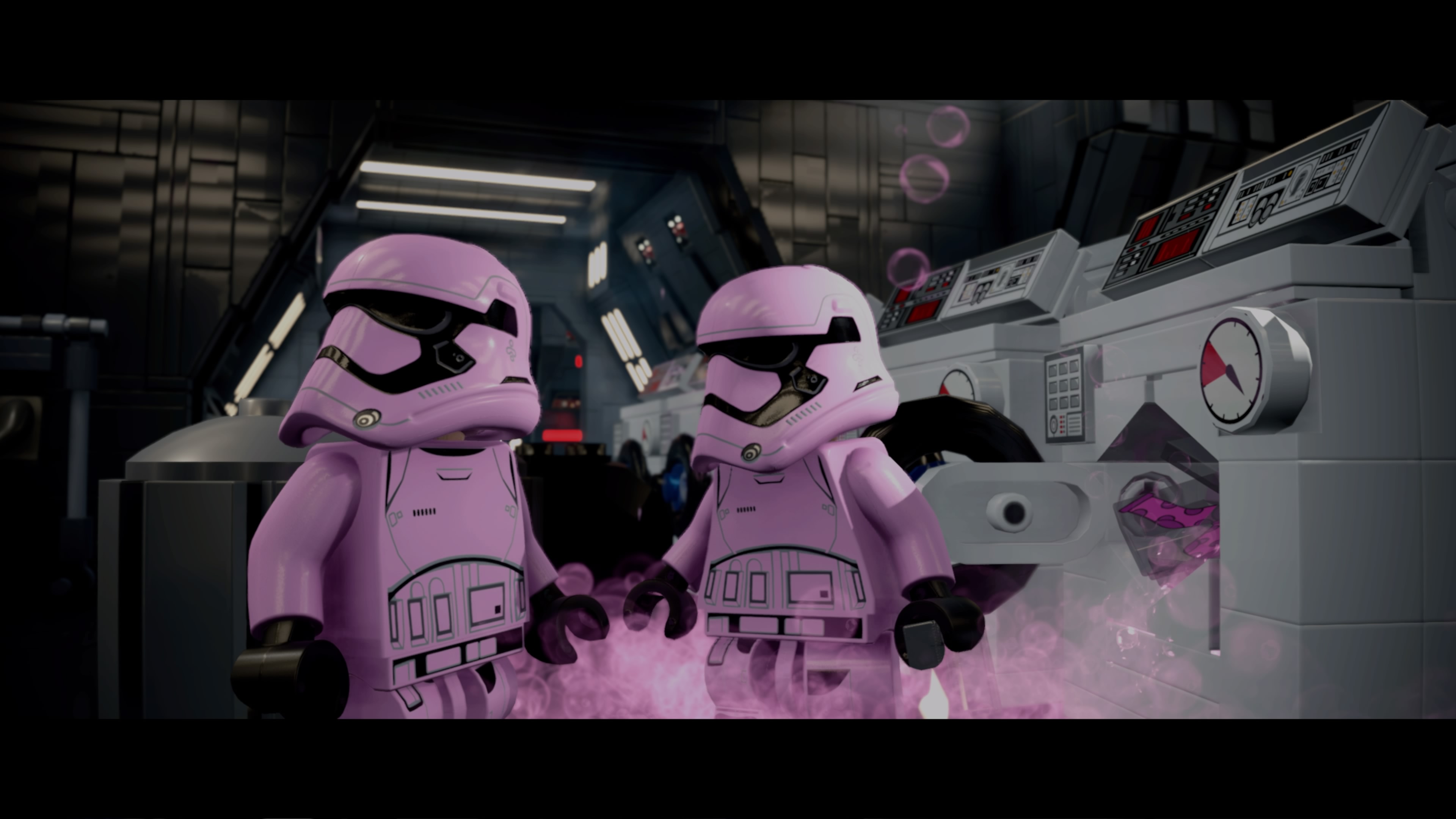 Ce n’est pas la première fois que je m’en plains, mais je préférais l’humour des jeux Lego, avant. A l’époque de Lego Harry Potter, par exemple, les personnages étaient muets. Tout juste se contentaient-ils d’émettre des bruitages. Les cinématiques se concentraient sur un comique de geste ou de situation, et c’était terriblement efficace. Lego Star Wars n’est pas dénué d’humour, cela va sans dire. Certaines cinématiques sont complètement burlesques et décrochent un sourire. Hélas, depuis que les personnages Lego parlent, lesdites cinématiques ressemblent plus à un résumé rapide de l’histoire qu’autre chose. Tandis que le nouveau jeu Lego rend un hommage humoristique à la prélogie et à la trilogie, j’ai trouvé les gags de la postlogie beaucoup plus méta. Certaines cinématiques se moquent allégrement de faits ayant été reprochés à la postlogie, et je ne peux que saluer cette audace même si ce n’est jamais trop irrévérencieux. Personnellement, j’apprécie le personnage de Kylo Ren, mais ça ne m’a empêchée de trouver sa parodie irrésistible.