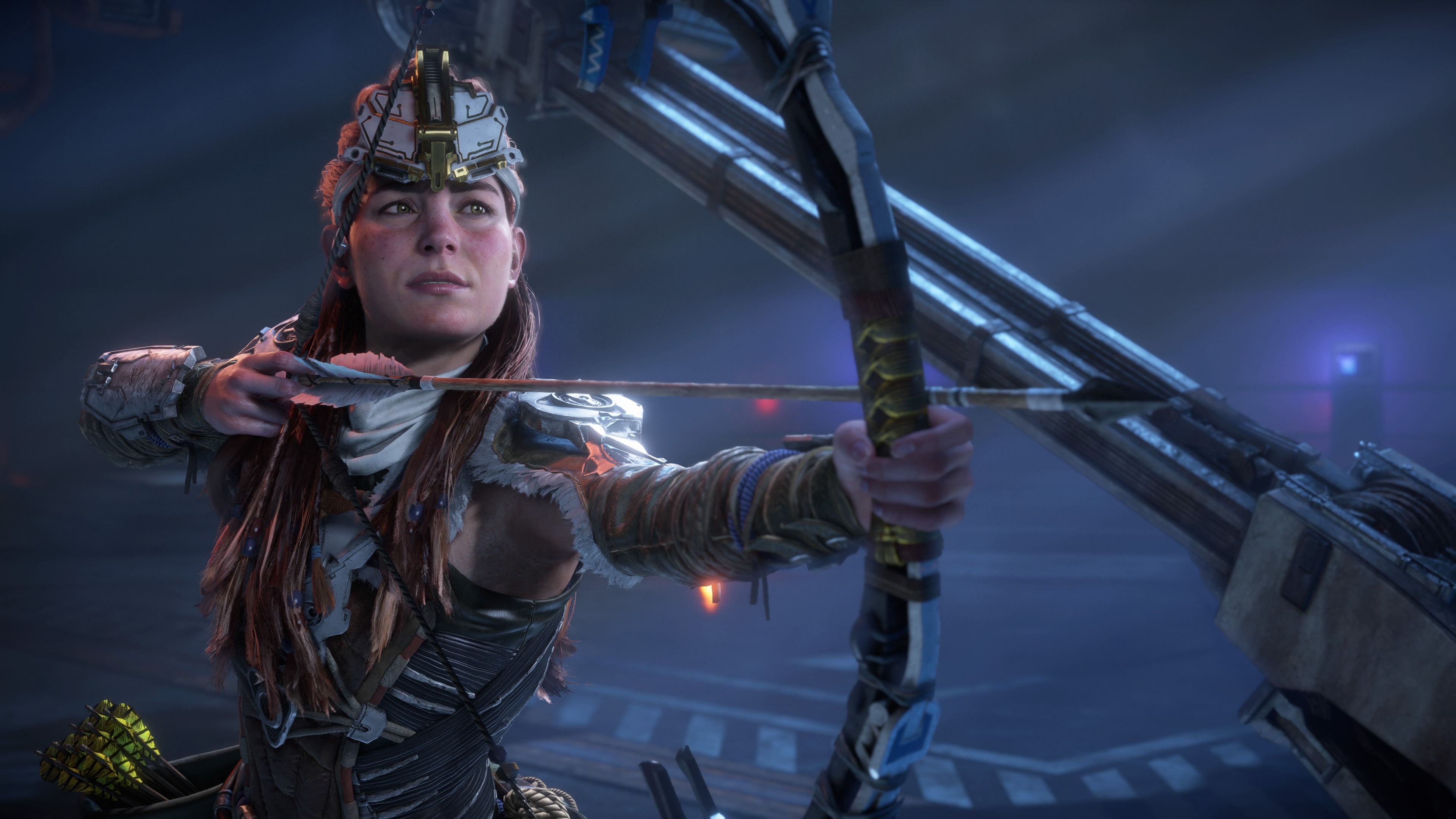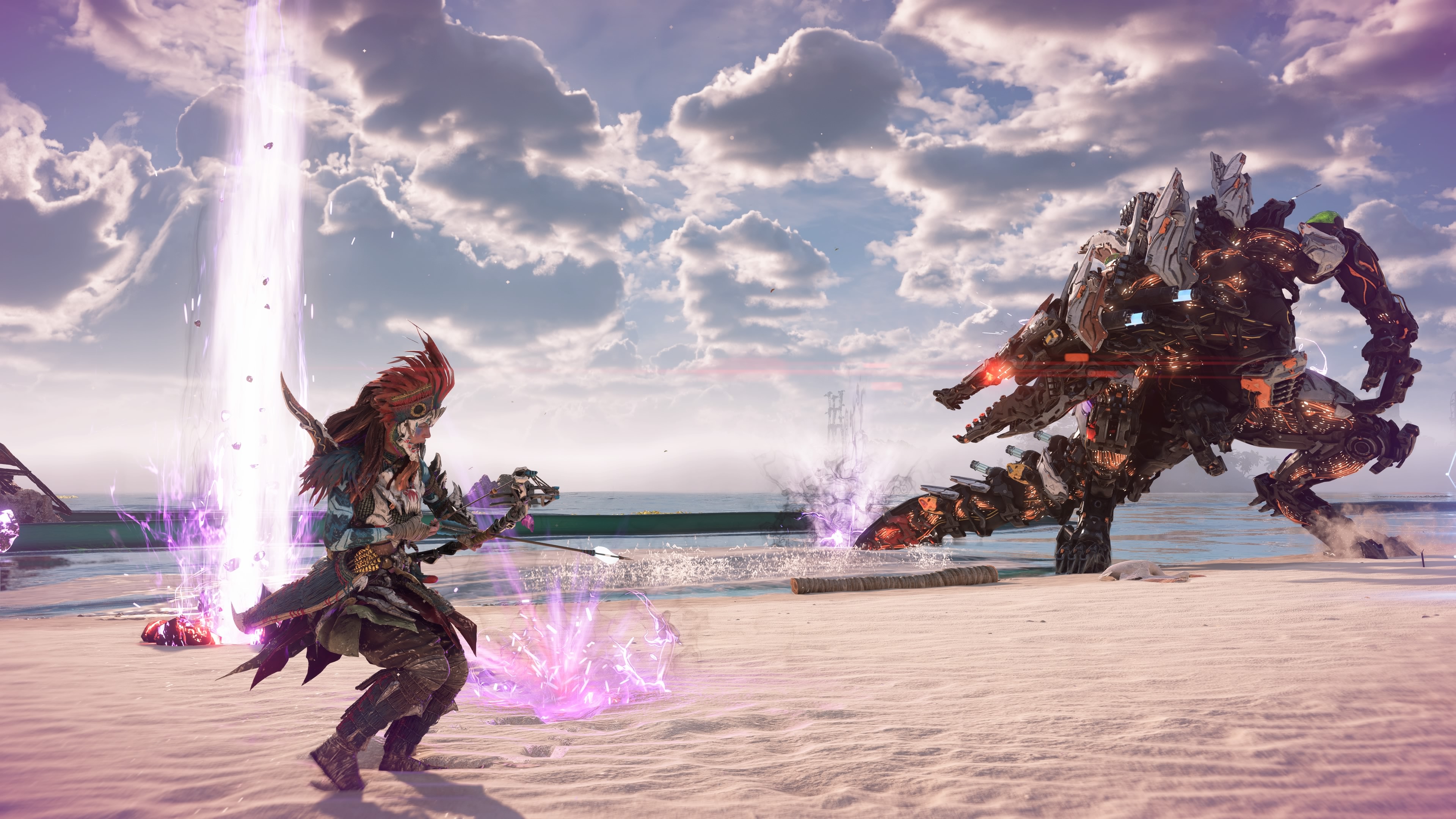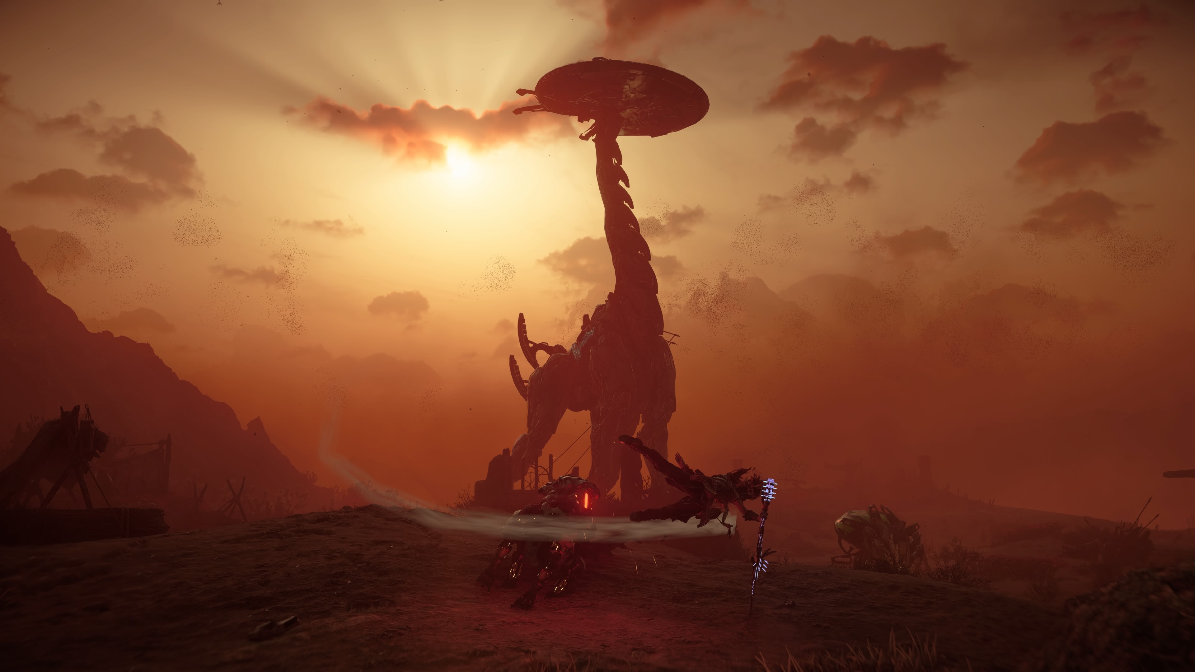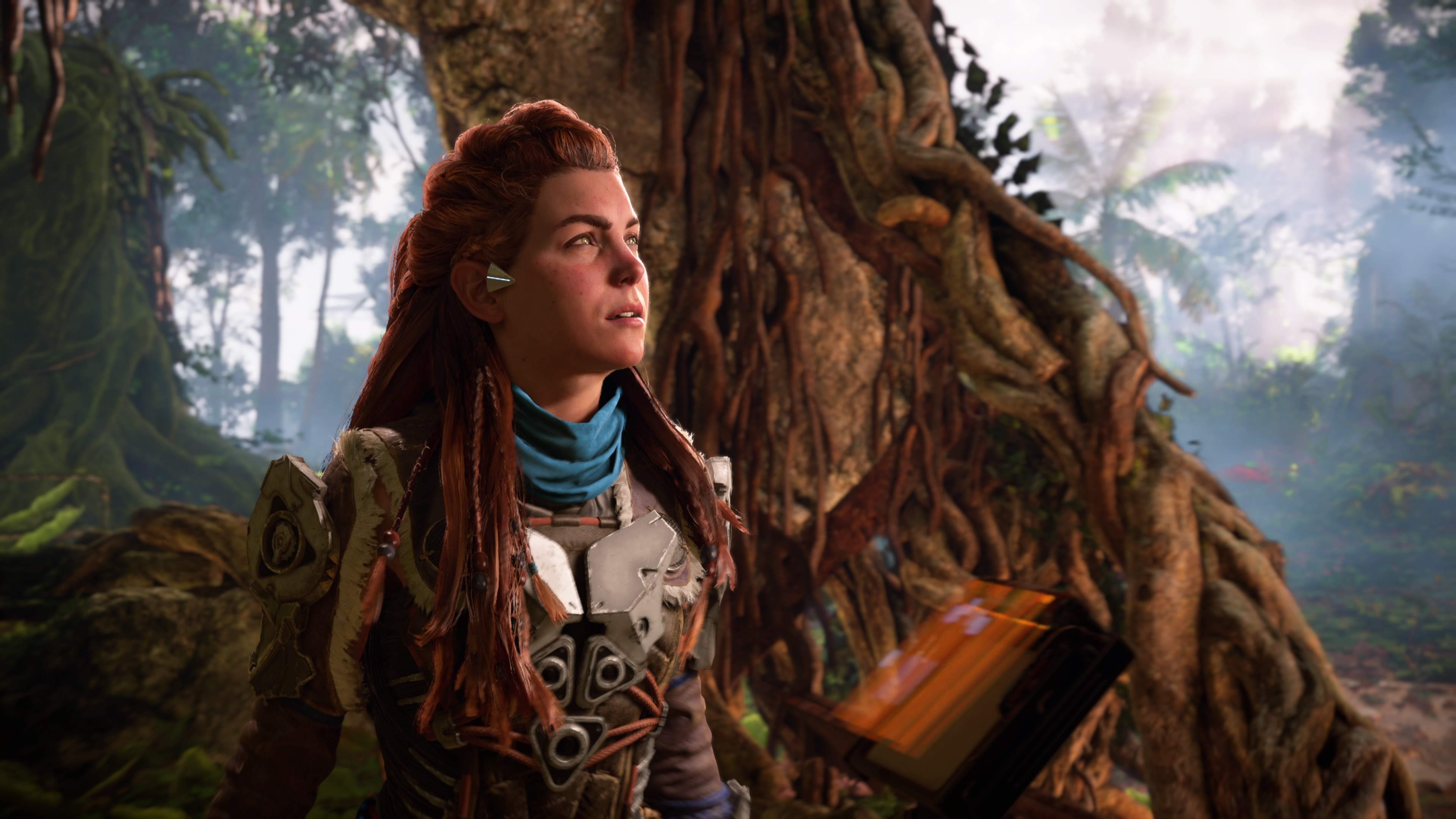 Ce n’est un secret pour personne, nous sommes amené(e)s à incarner Aloy, une jeune chasseuse de machines qui n’a plus à faire ses preuves, depuis les événements survenus dans le premier opus. Aloy veut littéralement dire « élue ». Bien que le caractère de l’héroïne se soit affirmé, je regrette qu’elle soit aussi rigide et ne se préoccupe finalement que d’accomplir son devoir, quoi qu’il en coûte. L’écriture d’Horizon ne brille pas par ses personnages mais par l’installation d’un univers atypique et contrasté.