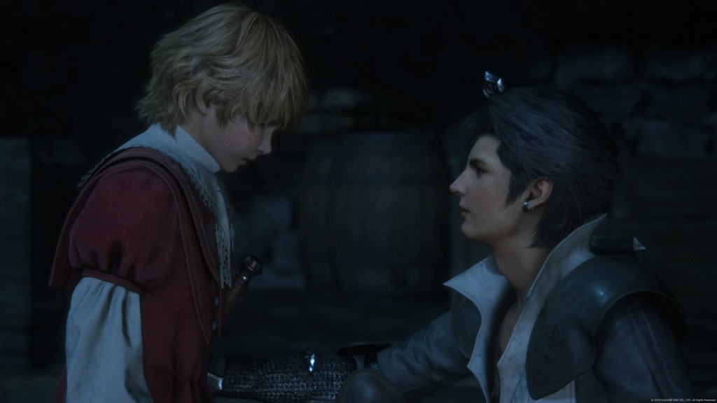 Comme à chaque fois qu’un titre principal se présente ; l’histoire se déroule dans un nouvel univers, et plus précisément dans le Royaume de Valisthéa. Celui-ci comporte six Cristaux-mères, dont dépend l’Ether, une substance qui permet aux individus d’utiliser la magie. Six nations sont liées aux Cristaux en question. Et chaque nation possède un Émissaire, autrement dit une personne capable de se transformer en Primordial. Ce n’est là qu’un nouveau nom pour les invocations ou chimères de la licence. Clive et Joshua Rosfield sont deux frères vivant à Rosalia. Le second, bien qu’il soit plus jeune, est l’émissaire de Phénix, l’oiseau de feu. Lorsque leur royaume est attaqué et dévasté, les deux frangins sont séparés. Clive grandit en tant que soldat et esclave d’une nation ennemie. Son destin va changer lorsqu’il va croiser la route de Jill (émissaire de Shiva), de Cid (émissaire de Ramuh) et d’un chien-loup nommé Talgor. Ensemble, ils décideront de combattre le terrible Roi Barnabas et de fonder un refuge pour les utilisateurs de magie traqués. Clive va gagner en maturité et ainsi devenir un homme libre, prêt à tout pour défendre ses proches et ses convictions. Cela n’a rien de surprenant venant d’un Final Fantasy, mais en dépit de personnages archétypaux ; l’histoire se révèle prenante et même particulièrement émouvante, lorsqu’elle atteint son dénouement.