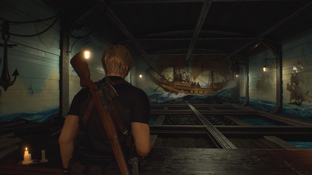 La première énigme de Silent Hill 2 est celle du jukebox, au Neely’s bar. James doit trouver le bouton manquant mais aussi réparer un vinyle. La musique apparaît, en filigrane, tout au long du jeu. Il n’est pas rare de trouver des partitions de musique, sans oublier que Laura appuie sur les touches d’un piano, pour surprendre James, dans l’hôtel Lakeview. D’ailleurs, l’énigme principale de l’hôtel s’articule autour d’une boîte à musique géante. Pour en revenir à l’énigme du jukebox, elle permet de se familiariser avec les mécaniques de gameplay, tout en commençant à explorer la ville. Or, celle-ci foisonne de références. Par exemple, les noms des bières du Texas Café font allusion aux films ayant inspiré Silent Hill, comme Jacob’s Ladder (L’échelle de Jacob) ou Red Velvet (Blue Velvet, de David Lynch). Il y aurait aussi des hommages au jeu d’horreur Layers of Fear, développé par Bloober Team en 2016, comme la présence d’un jouet en forme de chat, ou d’une machine à écrire, dans certains appartements. (Pour en savoir plus, je vous renvoie à la vidéo de SNIR).