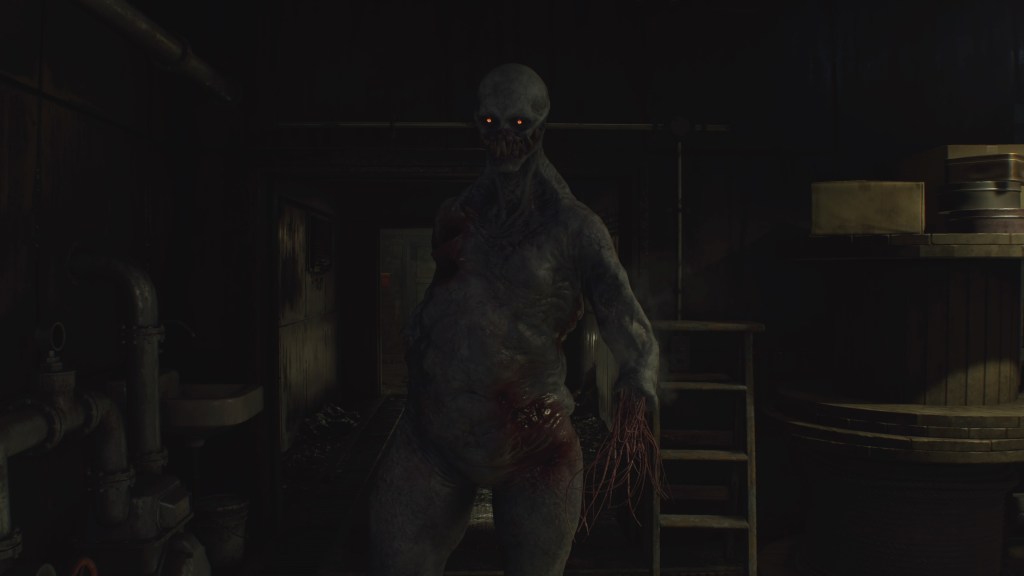James distingue néanmoins une traînée de sang, sur le bitume, et il décide de la suivre. Quelques instants plus tard, il met la main sur une radio qui se met à grésiller, lorsque le premier monstre du jeu, l’attaque. Il s’agit de Lying Figure, une créature dénuée de visage et de bras, comme si elle portrait une camisole de force. Elle semble porter des talons hauts et elle n’hésite pas à projeter du vomi sur ses ennemis. Quand elle perd l’équilibre, la créature se met à ramper sur le sol. Lying Figure est inspirée du tableau éponyme, peint par Francis Bacon, en 1961. La camisole de force pourrait symboliser la folie de James. Néanmoins, le bestiaire de Silent Hill 2 fait généralement écho à Mary, qui hante les pensées de son mari. En ce sens, la camisole de Lying Figure pourrait représenter la maladie de Mary, qui l’a forcée à s’aliter. Le vomi est peut-être un écho aux violences verbales que Mary avait à l’encontre de James, lorsqu’elle allait au plus mal…