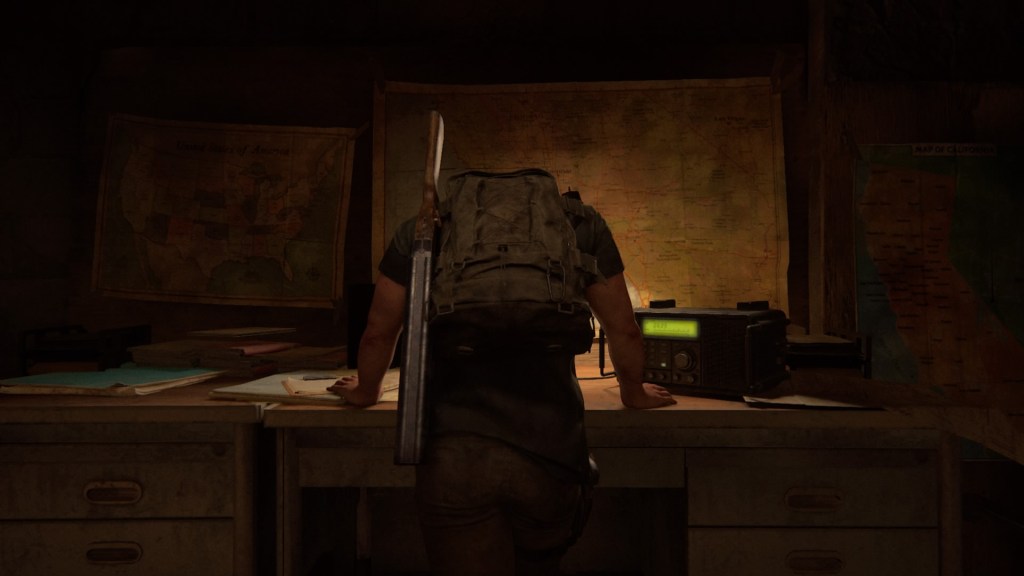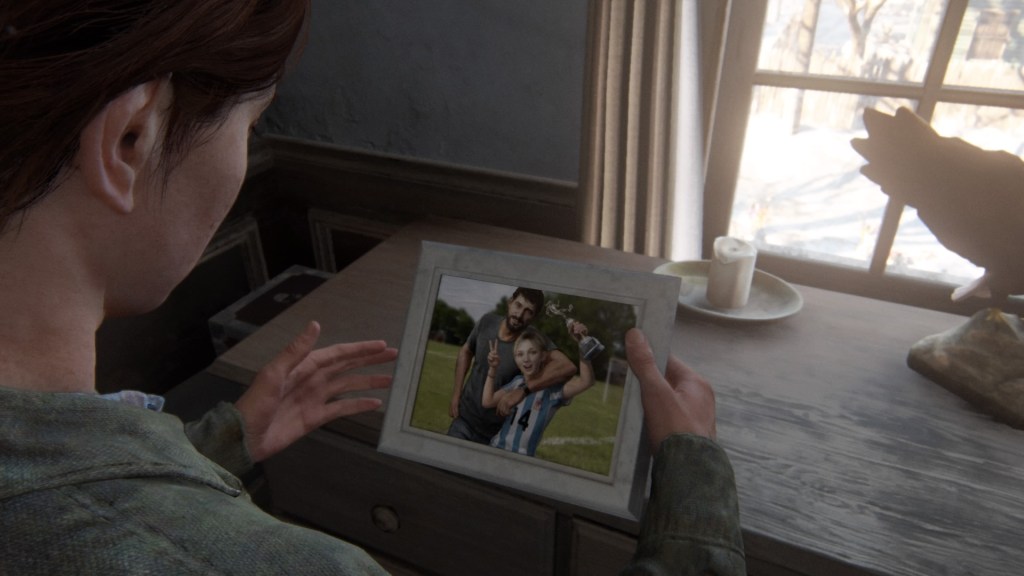 Je ne pense pas que la deuxième étape, le déni, ait une quelconque place dans le récit. Je salue, toutefois, le choix qui a été fait pour partager la tristesse d’Ellie. Le joueur n’assiste pas à l’enterrement de Joel. Il est plutôt amené à visiter l’ancienne maison de ce dernier, à Jackson. Je trouve ce choix nettement plus poétique et crève-cœur. Ainsi, le joueur, de concert avec Ellie, retrouve des objets très emblématiques, à commencer par la photo de Joel et Sarah.