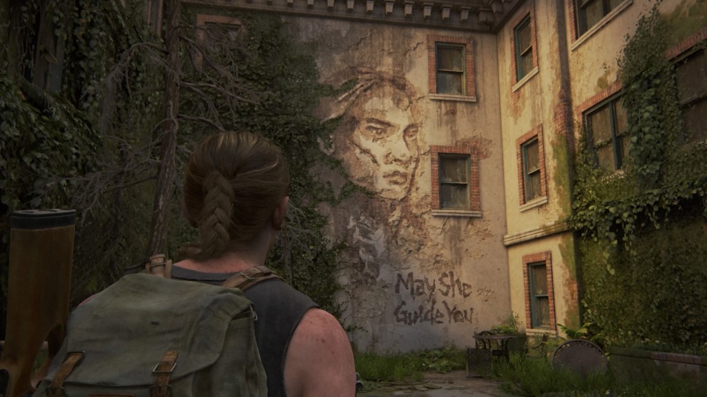 Abby, quant à elle, est en pleine phase de reconstruction, qui n’est autre que la dernière étape du deuil.Une grande complicité s’est tissée entre elle et Lev. Il est difficile de ne pas penser à Joel et Ellie, quand on voit la manière dont Abby taquine et protège Lev. Plus important encore, la jeune femme découvre que certains membres des Lucioles ont survécu, et compte bien les rejoindre. Alors qu’Ellie est encore obsédée par sa soif de vengeance, Abby est sur le point de terminer tout le processus de deuil. Ce n’est pas étonnant, dans la mesure où son cheminement a débuté bien auparavant, et puisque, contrairement à Ellie, elle a obtenu sa revanche. On pourrait redouter que le récit sous-entende que seule la vengeance amène la paix, mais il ne tombe pas dans cet écueil, comme le révélera la fin de l’aventure.
